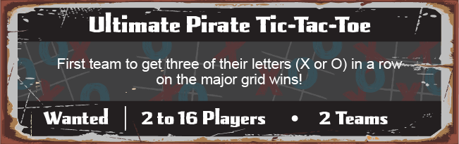 First team to get three of their letters (X or O) in a row on the major grid wins!